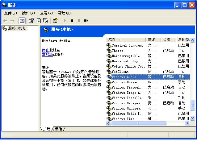 把windows Audio项启动就可以了,后面要是自动....