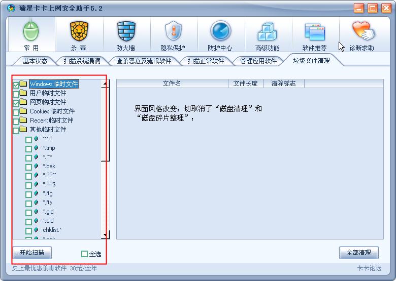 2.恶意及流氓软件 取消了“全选”和“全不选”的按钮