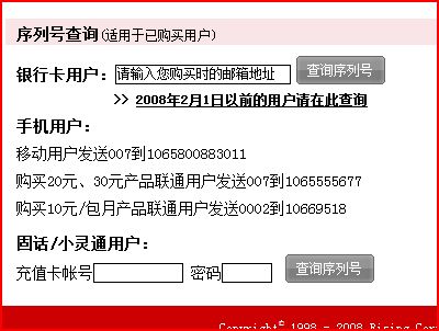 查看完整版本: 购买瑞星杀毒下载版,一年30元,短信发送成功,没有收到序列号和用户ID