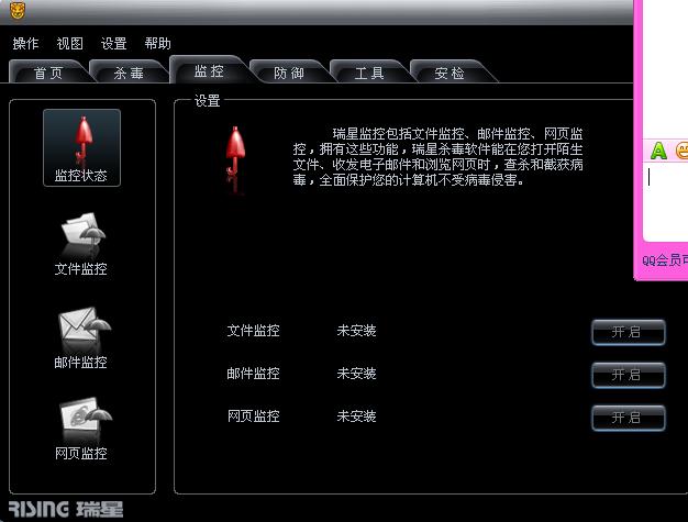 在右下说是所有的监控已经开启了~但是在杀毒软件界面却直接告诉我没有安装???比被关闭还可怕~请问这是怎么了~