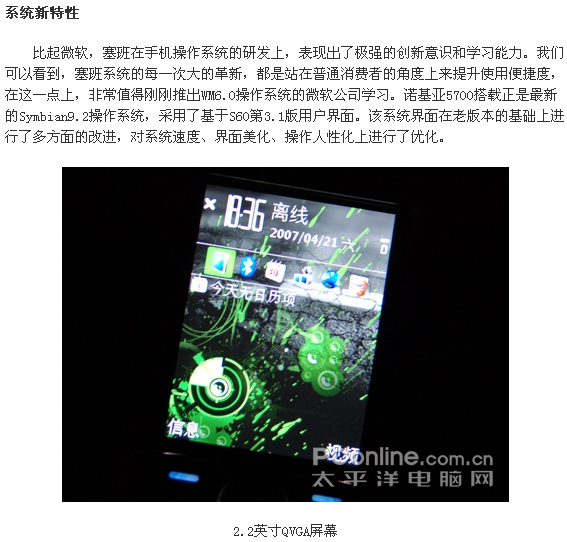·新系统新特性:采用最新的Symbian9.2系统,完善了许多S60第三版的小细节,CPU性能提升