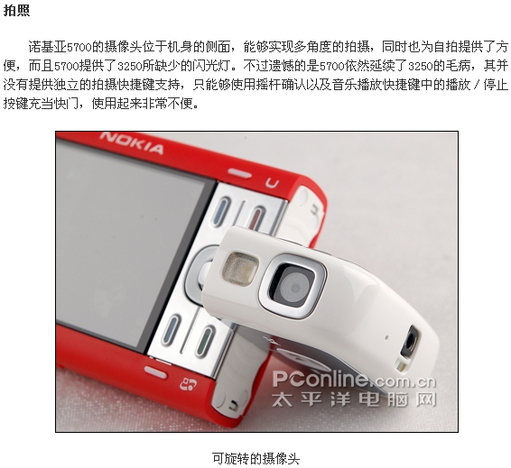 ·时尚动感造型:融合了诺基亚3250、5300两款热门机型的造型特点;手机底部可进行旋转