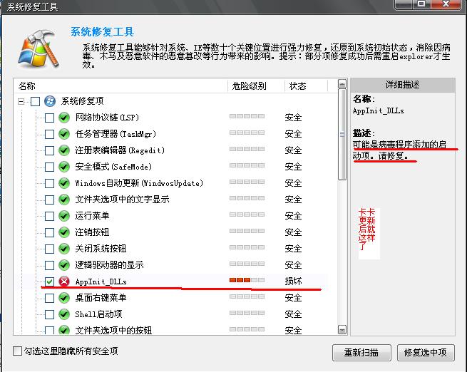 求证:卡卡升级后,是否对初始化动态链接库文件的注册表项进行了添加?发现一个日志,内容如下: