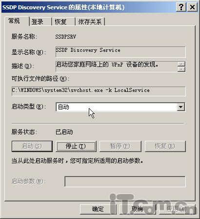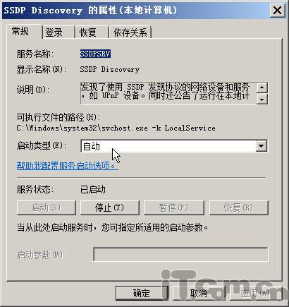 1.Windows XP 右击“我的电脑”,选择“管理”,然后单击“服务和应用程序”下的“服务”项,双击其中的SSDP Discovery Service,在“常规”选项卡上单击“启动类型”下拉列表框,选择“自动”,单击“确定”按钮确认。如果先前此服务是关闭的,可以单击“启动”按钮启动此服务(如图7)。