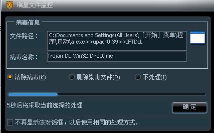 通过主动防御/应用程序访问控制,禁止C:\Documents and Settings\All Users\「开始」菜单\程序\启动文件夹的任何修改,创建,删除等,然后重启电脑,删除这个a.exe文件。