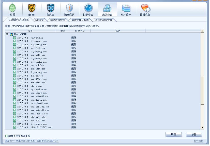 为了确保安全,我同时安装了卡卡上网助手和300安全卫士。最近因为我使用了360的磁碟机免疫,现在有时用卡卡扫描时,发现hosts文件中多出来好多选项,而且提示删除。请问一下,同时使用这两个工具会不会冲突。是不是必须把磁碟机免疫功能取消,才不会出现这个问题啊???