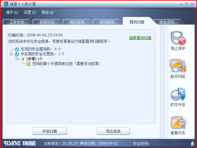 | 【tianyabj的贴子】我的电脑操作系统,dell笔记本是正版的XP Home,家庭桌面电脑也是dell带的Vista Home premium。我电脑里的瑞星杀毒和防火墙都是正版的。当进行漏洞扫描时,总是最后剩一个无法修复的漏洞:密码最小长度限制过短 这个漏洞对于home版本是不可能修复的,因为home这个版本来自于window 98系列,没有本地安全策略,无法修改密码限制长度。 我们办公室的电脑装的是xp professional,包括以前的windows 2000 server和profesional都可以直接修改本地安全策略(控制面板->管理工具->计算机管理),不存在这个漏洞。 如何修复home版本里的这个漏洞?是否是瑞星软件的bug或者是误报? ……………… |