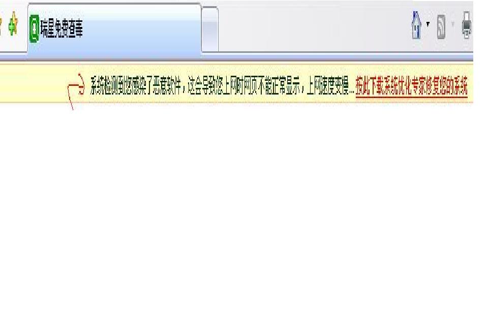系统检测到您感染了来意软件,这会导致您上网时网页不能正常显示,上网速度变慢...按此下载系统优化专家修复您的系统