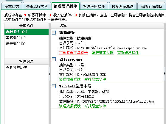 五分鐘前用專殺沒有查到什麼,剛裝了360安全衛士馬上就但出病毒來了,這毒真頑強啊。