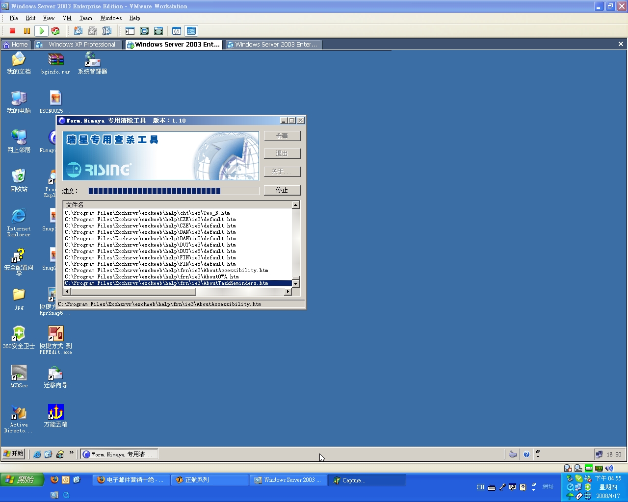 是的,是同樣的病毒,但上次那台是在ERP服務器上的,這次的這個是在用VM虛擬機建的WINDOWS SERVER 2003中。