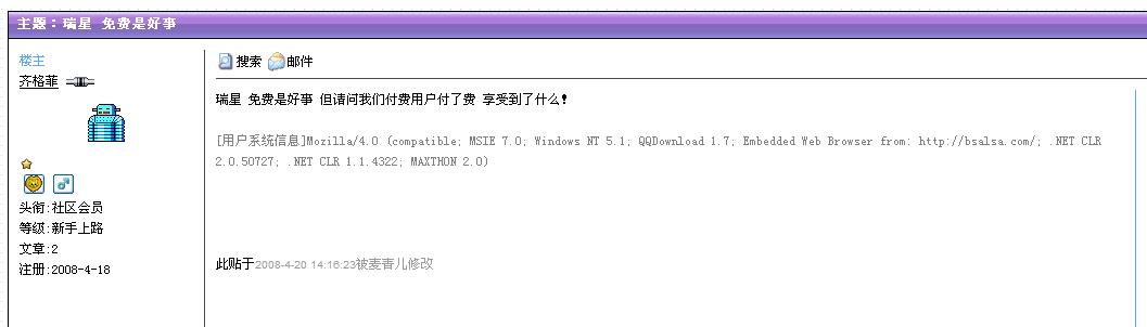 瑞星 免费是好事 但请问我们付费用户付了费 享受到了什么!