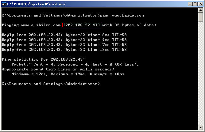 拿baidu举例吧,我只允许访问baidu,其他全部拒绝,那首先我要ping一下www.baidu.com,得到IP地址