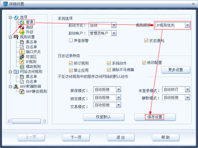 在左侧选普通,右侧把规则顺序设置为“IP规则优先”(这个很重要哦)