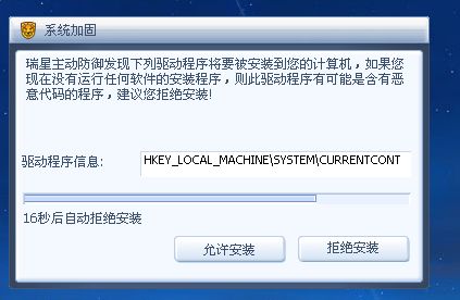 此问题为主动防御功能为了防止某些驱动程序加载,如果楼主未进行任何操作,计算机提示出来的窗口,建议选择拒绝。如果安装某驱动程序,选择允许安装就可以
