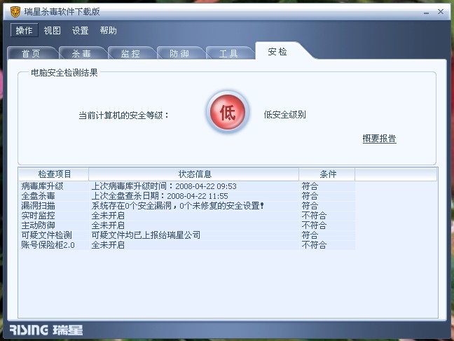 没别的办法了,卸载瑞星吧,卸载时选择删除安装目录,然后从官网下载08版安装