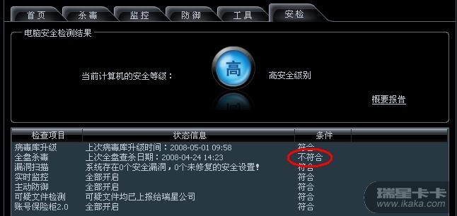 刚刚升级了最新版本,立即全盘查杀,可是,全盘查杀结束依旧提示“全盘查杀——不符合”,而且日期显示的依旧是上一次“全盘查杀”的日期;然后,等待到了又一次的升级,升级后并进行了“修复”,再次全盘查杀,查杀结束后,提示的还是“全盘查杀——不符合”,显示的上一次全盘查杀的日期也依旧是原来的日期,也就是说,两次查杀的结果和显示的信息是完全一样的,没有任何变化,两次的查杀结果也都是“病毒属:0”。
