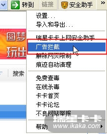 在IE工具条上启用卡卡,点击如图,就可以看到禁止flash的设置了。