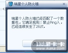 假如觉得提示太麻烦了,可以:设置_详细设置_规则设置_IP规则_双击[禁止PING入]_报警方式_