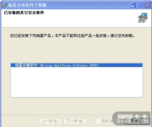 如果还不行,下载了新的瑞星安装包,断开网络,然后安装瑞星,