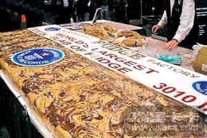 3、世界上最大的软糖    世界上最大的软糖由Northwest软糖工厂于2004年11月5日在加拿大的多伦多制作而成,这块巨大的软糖重1.36吨,不知道需要多少个人才能吃完。