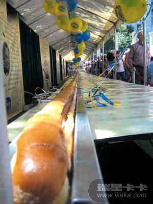 6、世界上最大的热狗    为了纪念日本面包协会50周年庆,他们在2006年8月4日制作了长达60.3米的超级热狗。