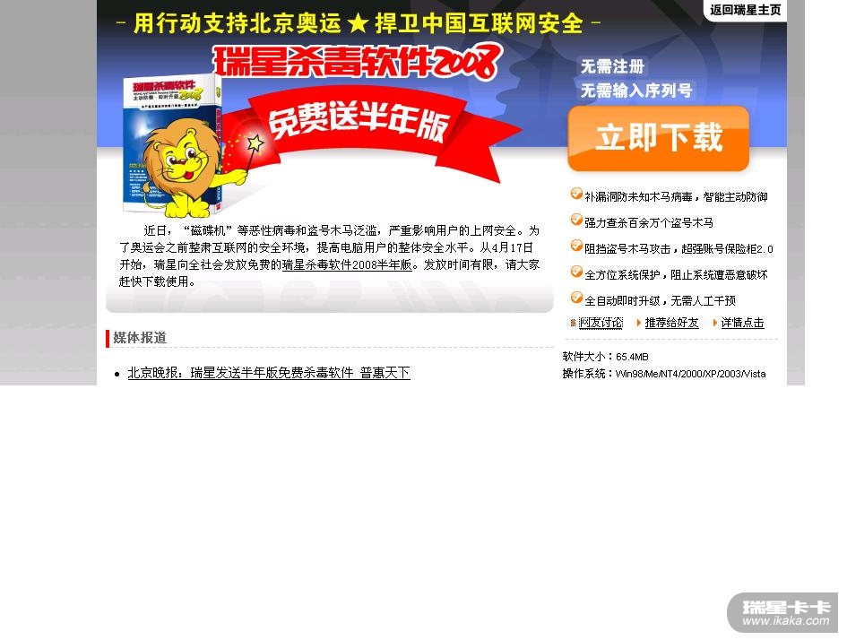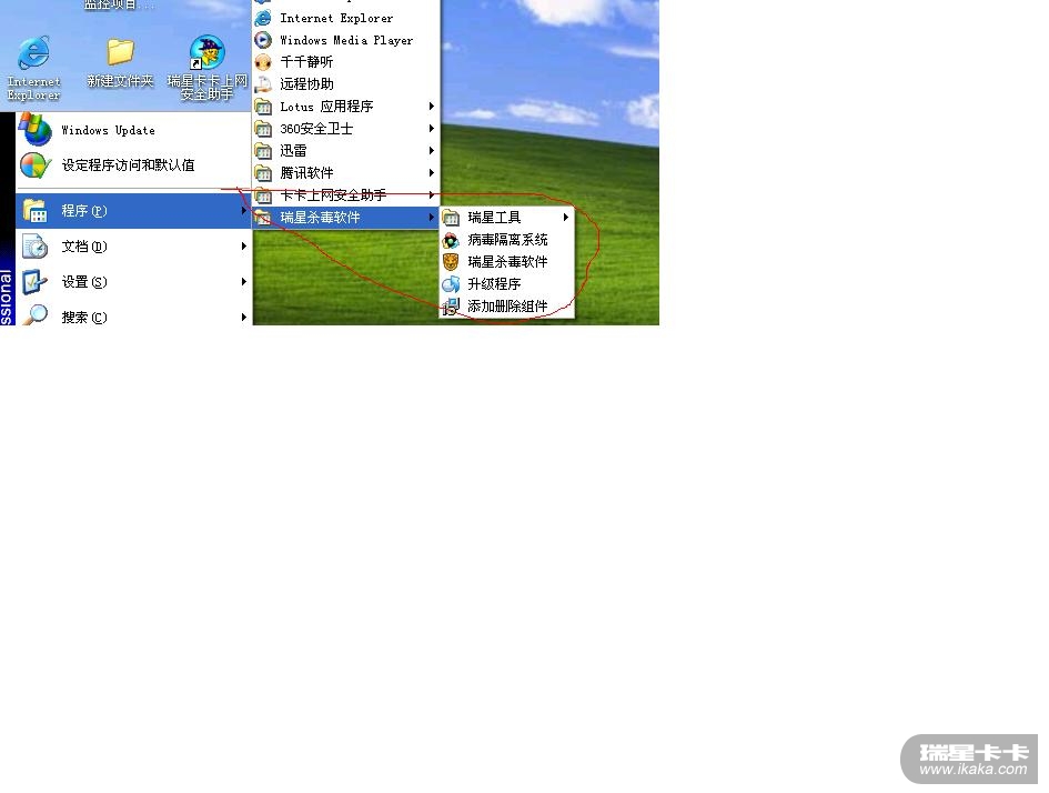 修复杀毒软件:点开始/程序/瑞星杀毒软件/添加删除组件,选第二项修复,直到完成。