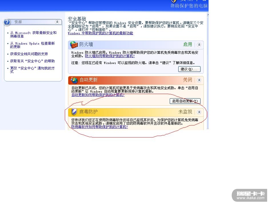 请查看一下,在右下角的瑞星监控中心是否存在和打开!貌似没看到监控中心的程序!