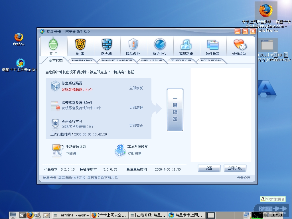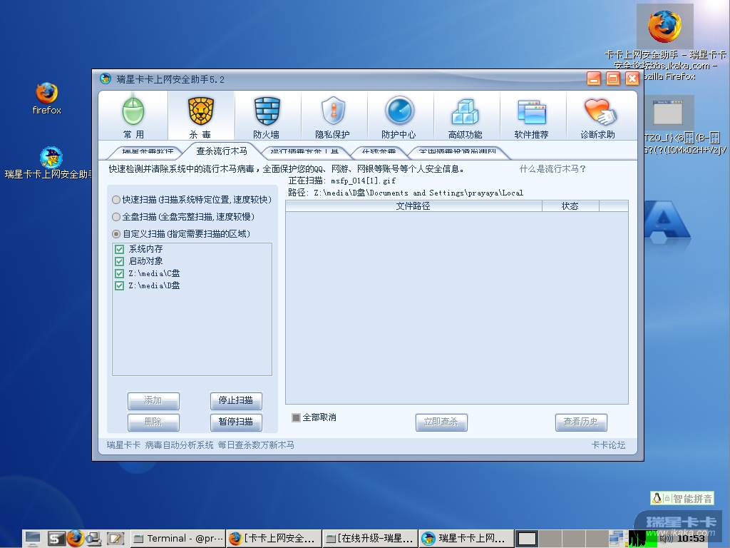 prayaya linux是可装到U盘,移动硬盘等移动存储上的操作系统,瑞星卡卡集防木马,杀毒,防火墙于一身,是非常好用的安全工具。