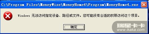 前两天下载了2008瑞星用,打开文件监控功能后,原来的的MoneyWise启动不了,总是提示“Windows 无法访问指定设备,路径或文件。您可能没有合适的权限访问这个项目。”只要关闭“文件监控功能”就可以正常打开程序了。