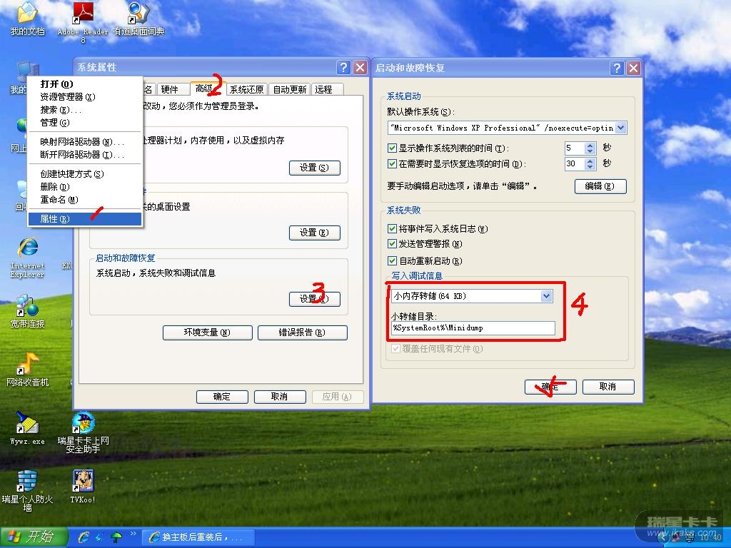 看图按步骤操作并完成相关设置,下次蓝屏后把c:\windows\minidump这个文件夹的压缩包上传: