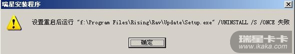 如是单机版,把f:\program fises\rising\rav\下的setup.exe 文件拷贝到f:\program fises\rising\rav\update下尝试一下