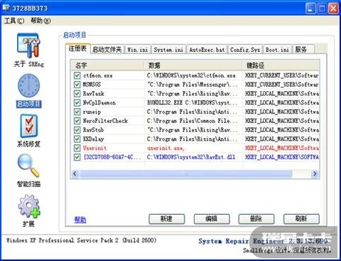以上各注册表启动项目,为XP系统通用启动项目,即:正常启动项