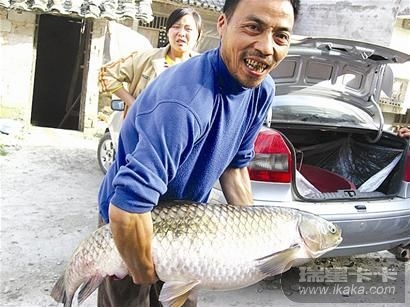 村民只身下塘,捉得两条10多公斤重的大鱼