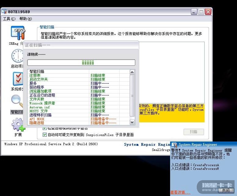 试着启动瑞星杀软全盘杀毒,但是没杀出个结果。