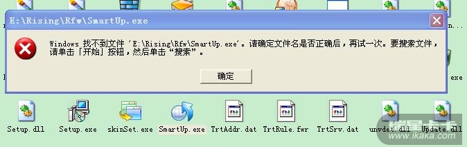 不知道中的什么病毒,点击瑞星杀毒软件和防火墙主面板上的软件升级无反应,点开始菜单项里面的升级程序会弹出如图提示,打开瑞星安装目录找到升级程序图标点击居然也会出同样的提示,这是什么病毒,应该怎么查杀?