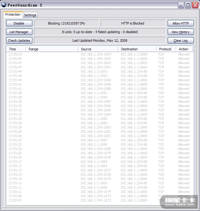 PeerGuardian2 显示与 SpeedTouch546 间有端口扫描,546用了一年多,一直没这现象,最近发现的。