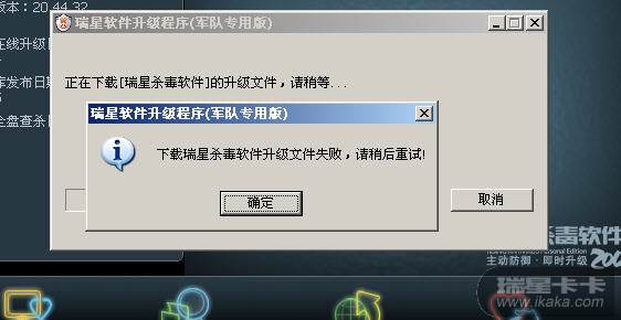 在软件升级老是失败的情况下前往主页的产品升级链接处下载升级,可下来升级包安装后,瑞星的杀软居然变成了军队专用版,导致无法获取升级地址,改变升级方式禁止,ID输入被禁止。最终结果就是无法升级以及消息中心无法链接上,郁闷,期待解决方案