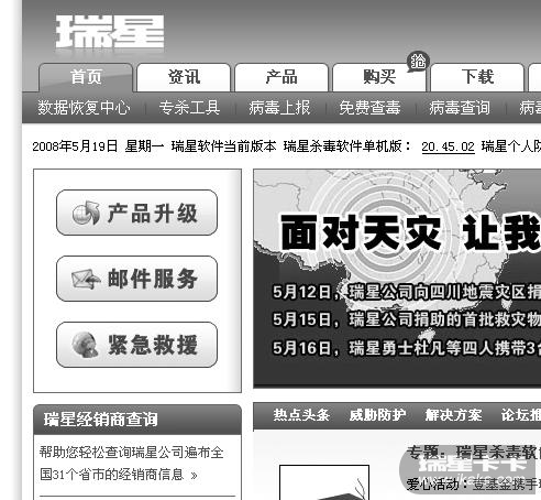 今天是全国哀悼日,各大网站的网页都是灰色,就你们瑞星还是彩色!!!