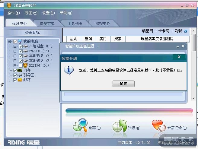 今天新格式化电脑后..从新安装瑞星..我买的是瑞星2006.. 安装后升级只能升级到19.71.02..软件界面却是2007模式的``很奇怪啊...就是这样