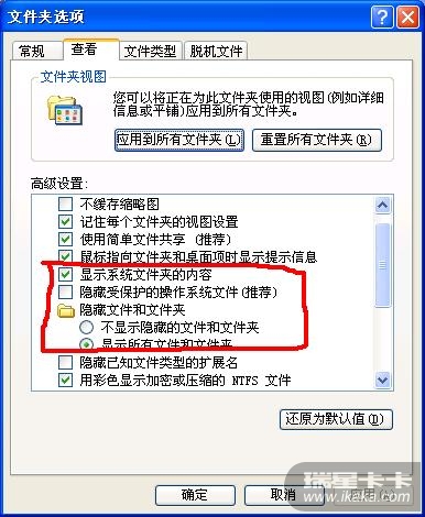 双击“我的电脑”--工具--文件夹选项--查看,按照下图红框处调整设置: