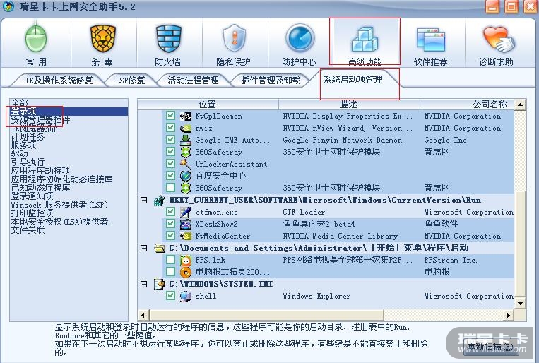 可以利用 卡卡上网安全助手 高级功能 启动项 找到相同的那个经 取消 开机启动 怎么找?