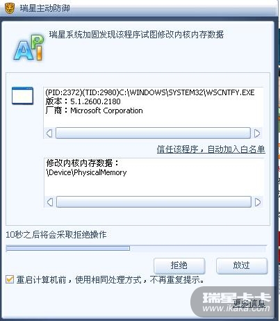 我不知道重装了几次电脑,可每次重装后都没有病毒,等用了10多分钟后就会自动的提示个什么注册表修改的(如图)