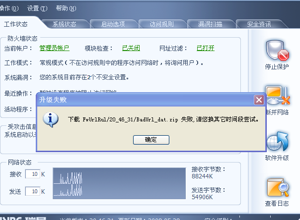 今天我杀毒软件,安全升级到最新版本,可是防火墙升级就发生图上的错误!!请问瑞星这个是怎么回事,不要推卸责任,不 要说我网络差!!请给一个说法?????