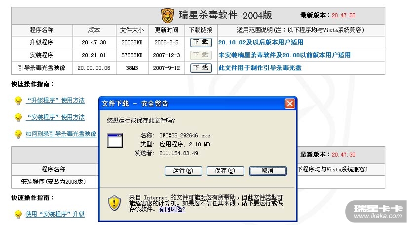 我的系统是新装的,上的第一个网站就是rising,机子是没有中毒的
