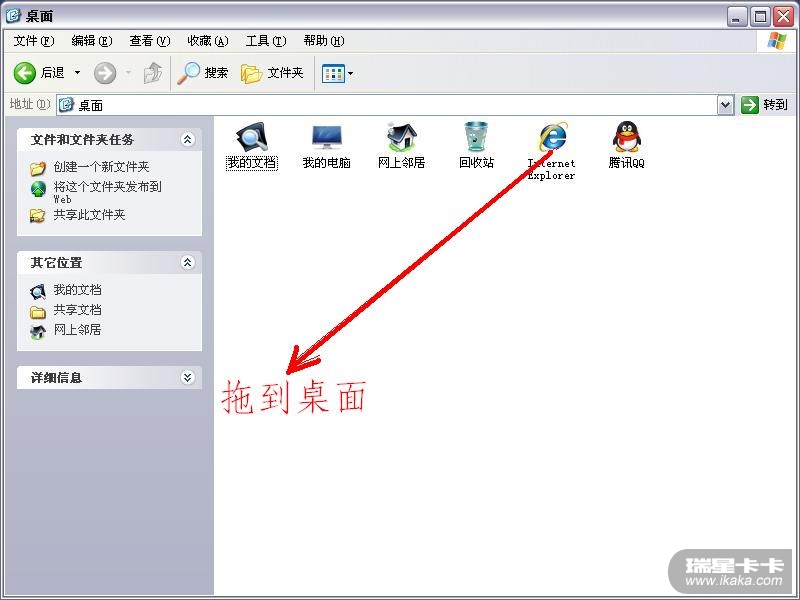 打开我的电脑---向上一步,然后将IE图标拖至桌