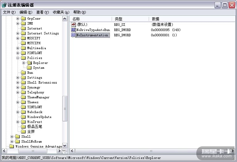 如果是当注册表里下面的“我的电脑\HKEY_CURRENT_USER\Software\Microsoft\Windows\CurrentVersion\Policies\Explorer”
