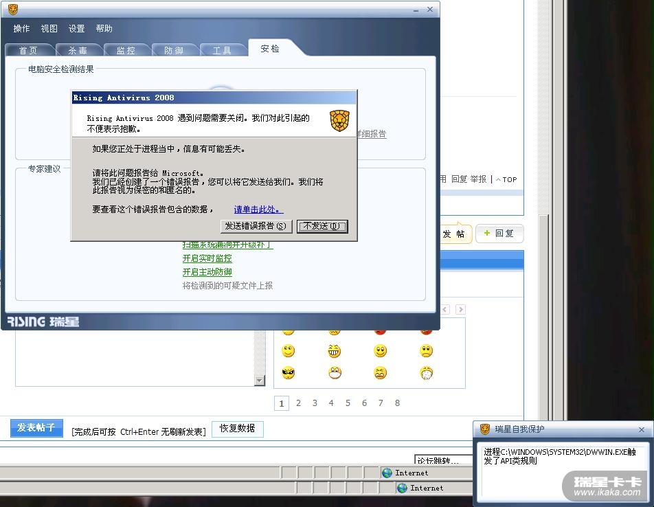 病毒都按BBS上的办法杀了,监控也可以开了,但是瑞星安检还是不行,一开就程序错误,这个怎么解决啊