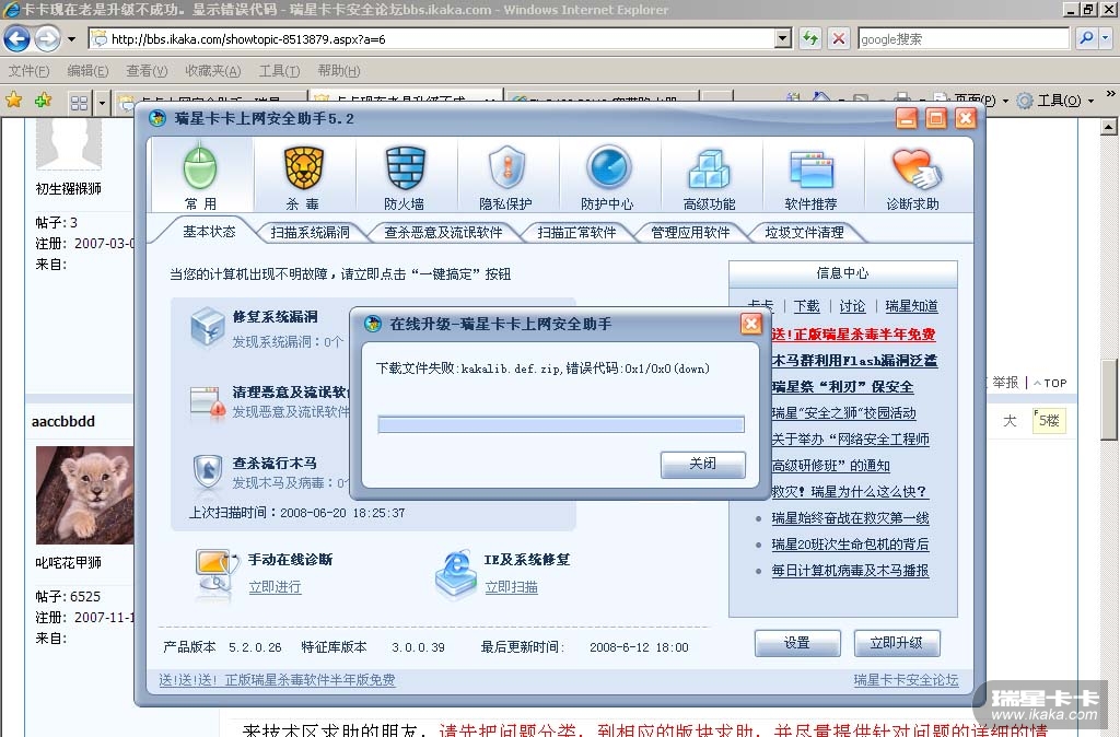 升级和网络有关系,和瑞星的升级服务器,和自己的电脑设置都有关系。