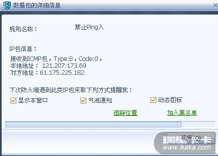 我用瑞星个人防火墙,然后总是会跳出一个笔尖的动态图 ,我查看数据包的详细信息是:规则名称:禁止Ping入