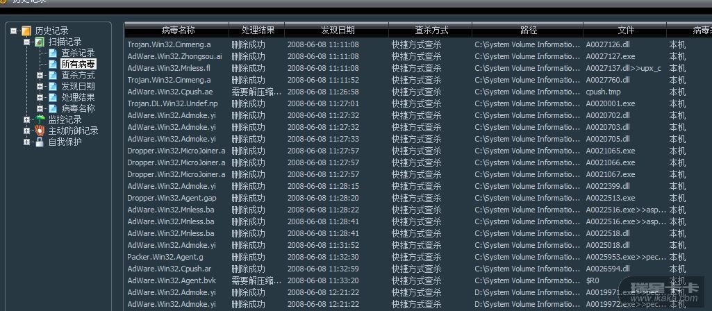 这瑞星到底是怎么回事 怎么经常发现关闭了系统还原 他还能扫描到那个文件夹。。。